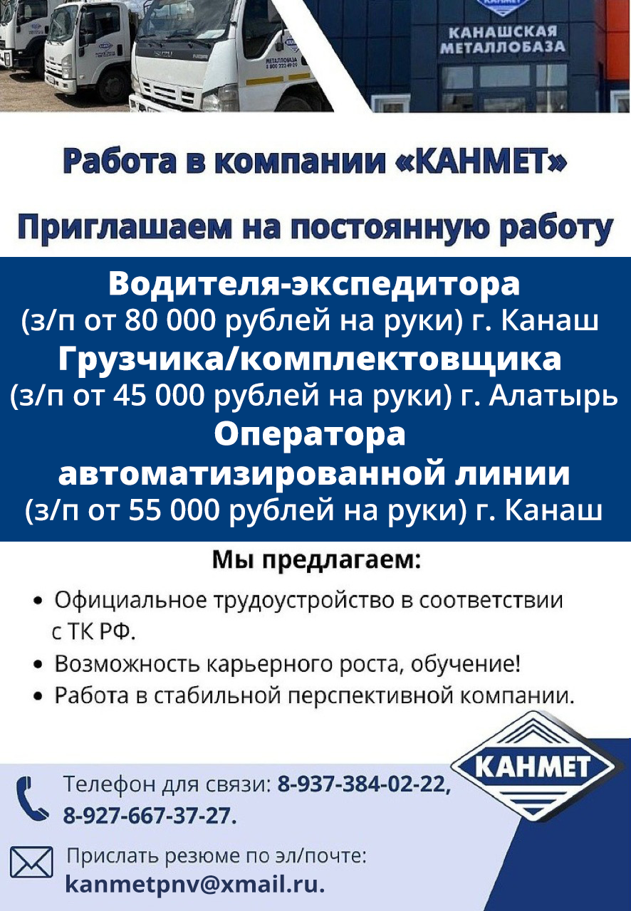 - Водителя – экспедитора (г. Канаш)